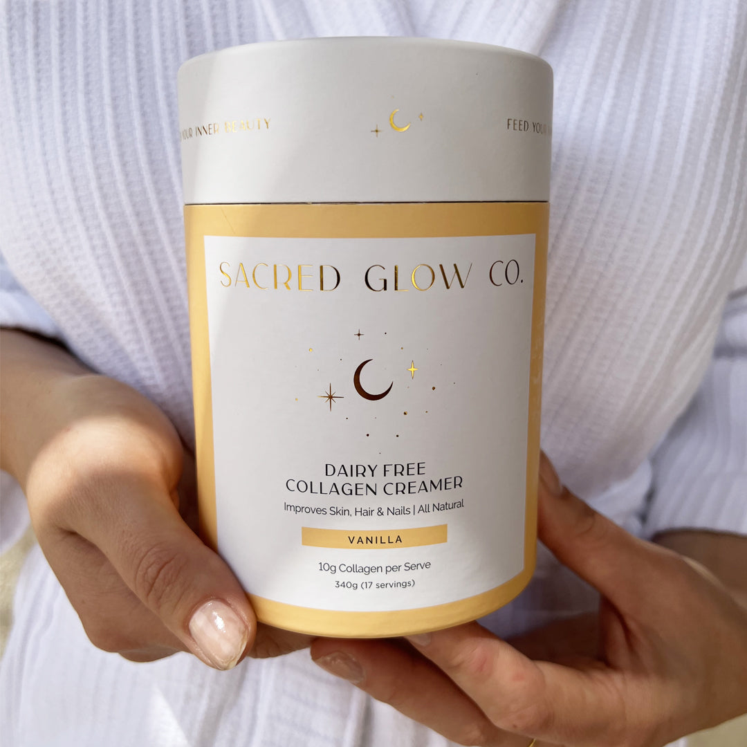 Our Dairy Free Collagen Creamer is the perfect addition to your morning routine. It helps to increase your bodies collagen supply providing the benefits of glowing skin, stronger hair & nails.