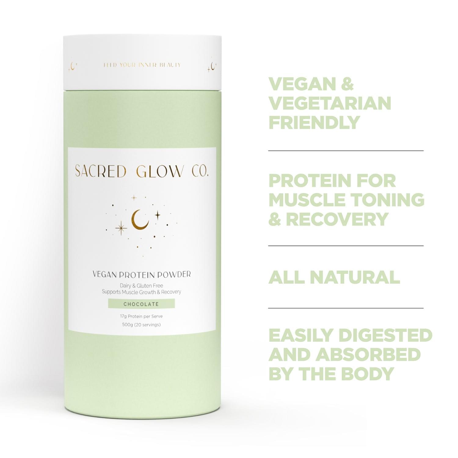 Sacred Glow Co. Vegan Protein Powder has been delicately refined so it tastes absolutely perfect when you add to your daily protein needs whilst adding creaminess to your smoothies.
